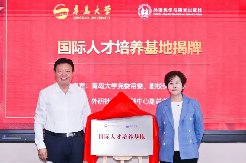 陈涛副校长、王悦副总监共同为中国外语测评中心国际人才培养基地揭牌。